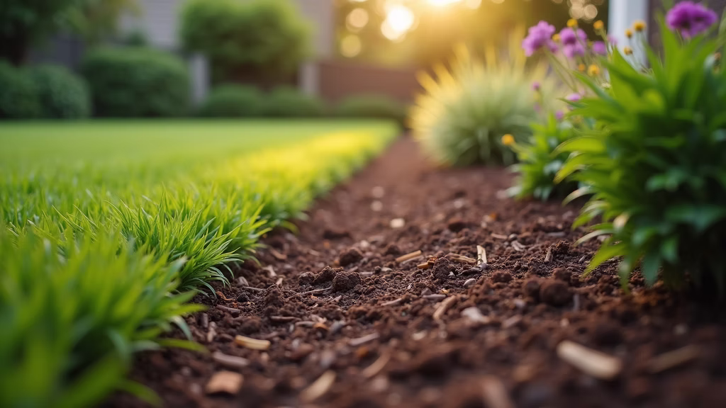 Caption: Healthy soil teeming with organic matter supports vibrant lawn growth.