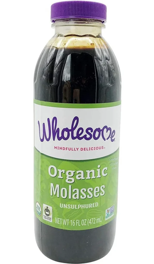 Molasses- The thick, dark brown syrup you might buy at the grocery store, is found naturally in sugar beet and sugar cane plants and is a co-product of sugar refining. During the refining process, it is separated from the sugar crystals by spinning the sugar in a centrifuge. The first spin produces light molasses, while later spins produce darker molasses